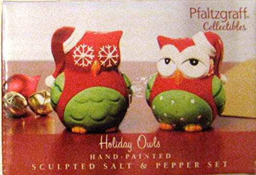 Pfaltzgraff Collectibles Hand-painted Holiday Owls, Sculpted Salt & Pepper Shaker Set