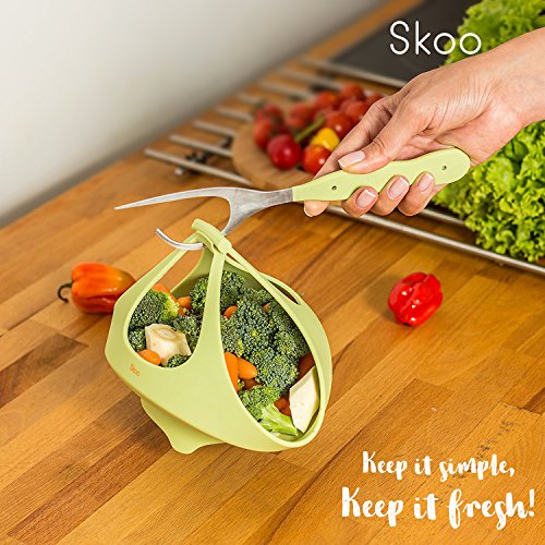 •Sometimes cooking can be overwhelming, time consuming and so messy! But sometimes the fanciest dinner can be the simplest to make.Also the breakfast! For this purpose SKOO Innovative Silicone Kitchen Set, with food steamer basket ,4 egg poacher cups and fork is designed to make steaming and poaching simple, fast, safe and accessible to everyone.