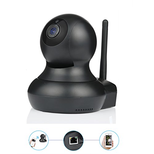 -. Feature : New Smart home IP security camera to monitor your warm-home, support Cloud P2P, Quick wired/wireless network connection. / 1280X720P video recording cheapest wireless camera with 1.0MEGA lens for home security surveillance / Pan 355degree/tilt100 degree rotating surveillance camera for home security system / 13 LED lights with night vision sensor, Distance up to 30ft,support IR cut ,snapshot and recording and never wory about dark place.remotely triggerrd and controlled camera by Andriod &IOS smartphone wherever you are / Anti-burglar camera to push notice your phone, Motion detection alarm, Built in Microphone and speakers. You can talk and listen to your families or friends on a mobile device. Supporting video monitor records to micro SD card 64GB (not included).