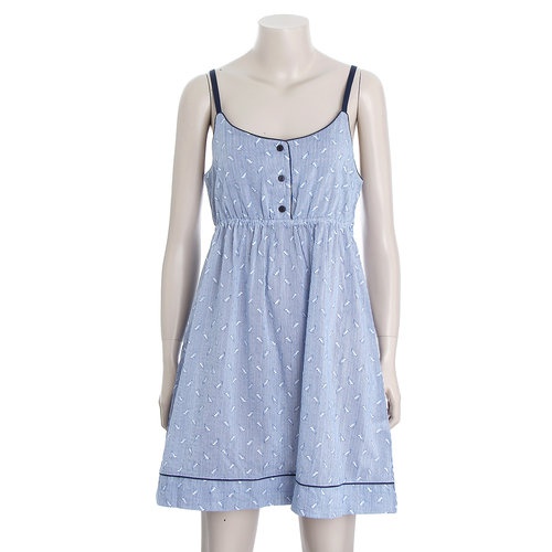 시원한 느낌의 블루 버드프린트 스타일로 나온 풀슬립 입니다.