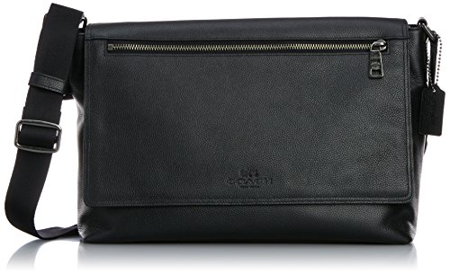 COACH MEN'S REFINED PEBBLED SULLIVAN MESSENGER QB/BLACK MESSENGER BAG