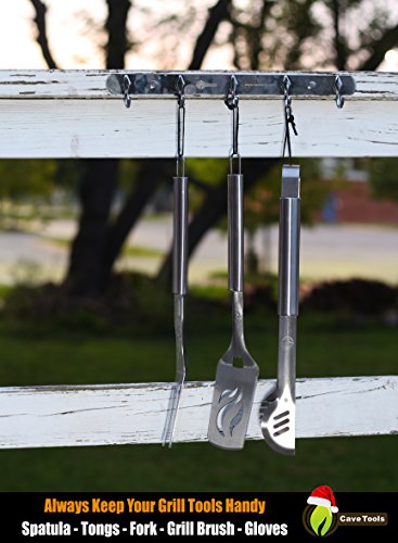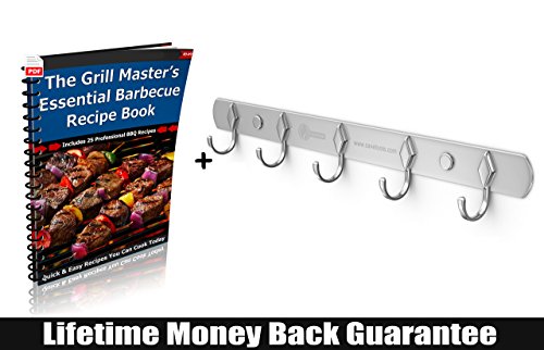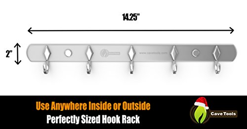 Hook Rack for BBQ Utensils, Coats, Pots, Bathroom Towels - HEAVY DUTY STAINLESS STEEL - 5 Hooks Rail For Hanging All Of Your Grill or Smoker Tools & Accessories - Wall Mount Easy Installation
