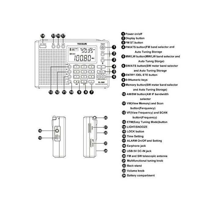 Agneius PL-380올 밴드 디지탈 라디오 TECSUN DSP처리(색:블랙)【일본어 설명서】