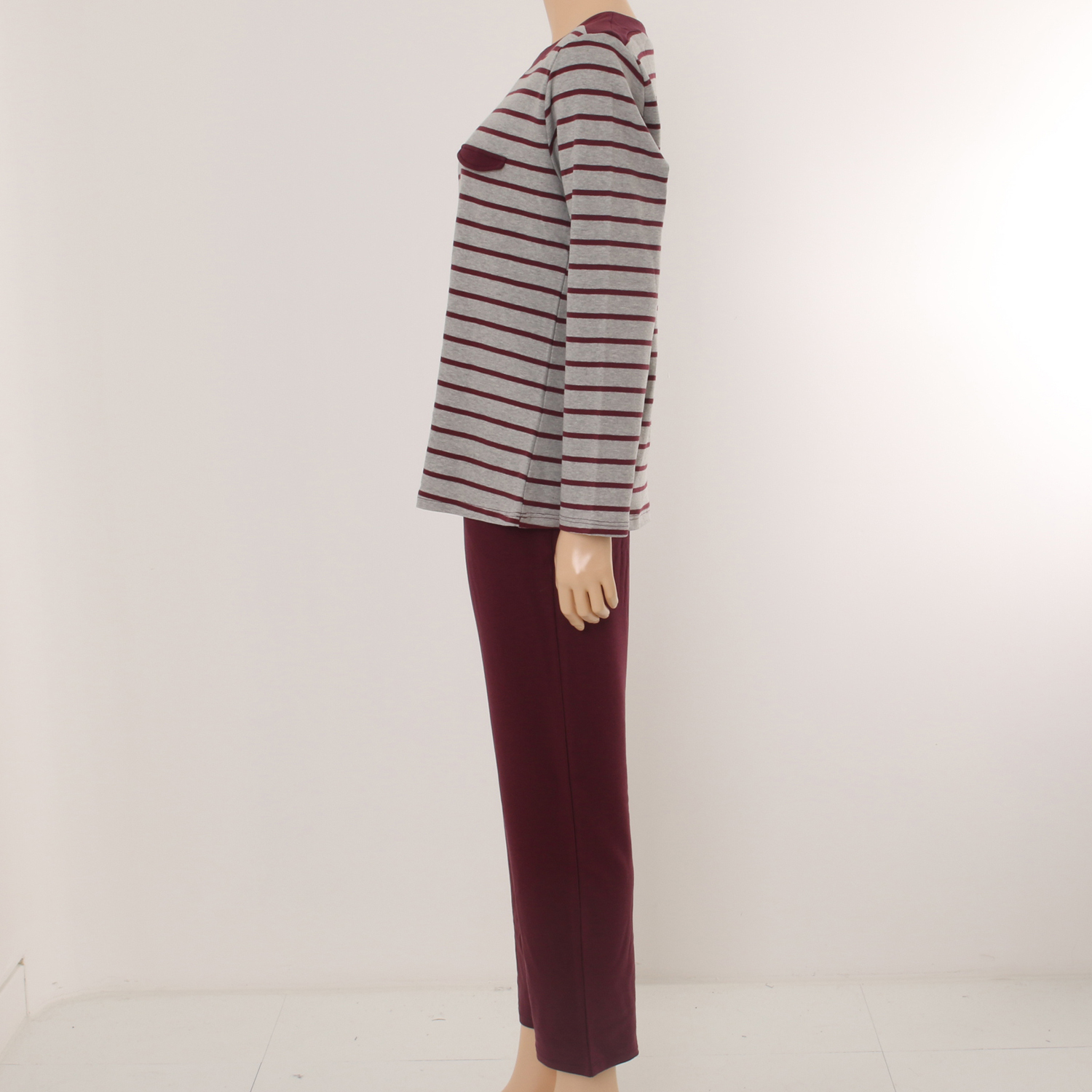 베이직한 스트라이프 심플한 칼라감의 실내복으로 부드럽고 따뜻한 터치의