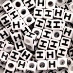 "H" White Plastic Cube Alphabet Beads, 7mm, Letter H, 75 pcs