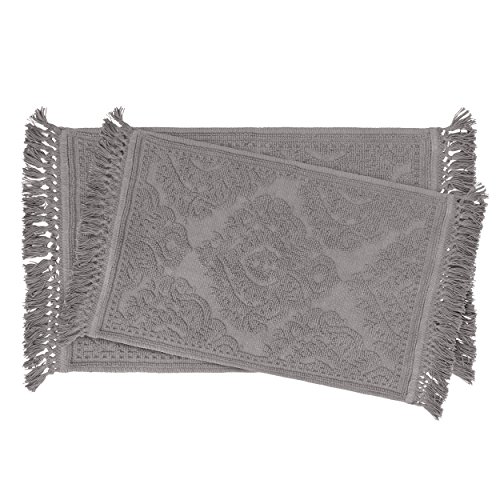 Jean Pierre New York Ricardo Cotton Fringe 17x24/21x34 in. 2-Piece Bath Rug Set, Dark Grey