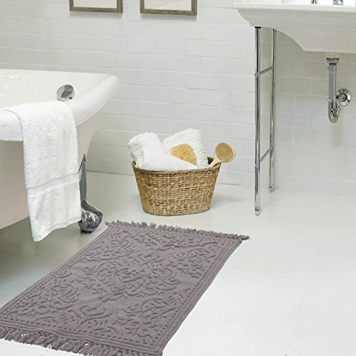 Specially woven to resemble beading and finished with on-trend fringe, these 100% natural cotton bath rugs by Jean Pierre are the perfect way to elevate your bathroom décor