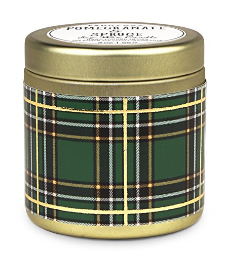 Paddywax Tartan Holiday Collection Scented Travel Tin Candle, 3-Ounce, Pomegranate & Spruce