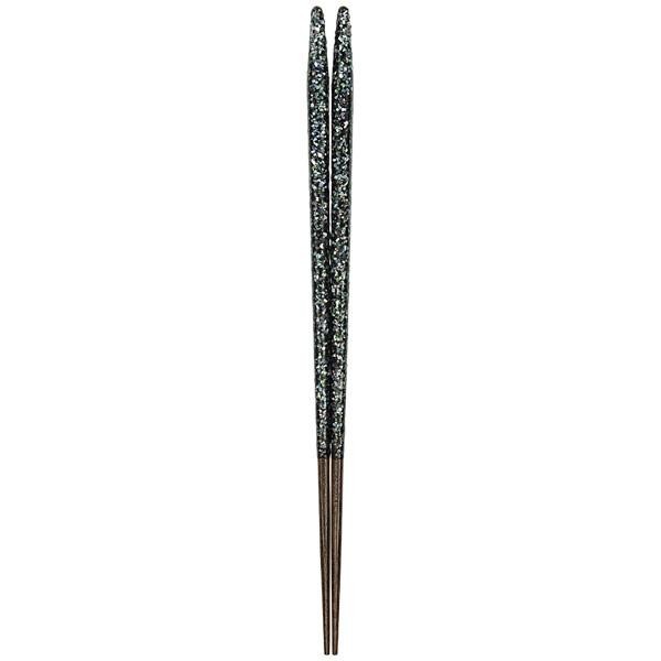 細かく散りばめられた無数の貝が、華奢な細身のお箸とかけ合わさって上品な印象を与えてくれます。光や見る角度によって七色に光る、螺鈿という伝統技法を用いたお箸です。 |