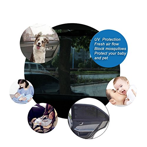 ▶YOU CAN ROLL DOWN THE WINDOWS: High quality stretchy nylon mesh is breathable, with no problems when opening and shutting the doors and they don't interfere with putting the windows up or down at all because they go over the frame of the of the door. You can enjoy a nice breeze from outside while staying protected from the sun.