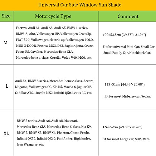 ▶PROTECT YOUR LOVED ONES: Shields your babies, kids, and pets from deadly sunlight. Protect your loved ones in their car seats and booster seats by applying the sun shades to the rear side doors of the car. This provides UV protection, cuts sun glare, reduces heat, and prevents passenger in the rear car from getting burned or overheated. 【You can check the Size Information in the pictures. If you have any questions please contact with us freely.】