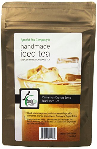 -. Binding : Grocery -. Brand : Special Tea -. EAN : 0852667691042 -. Feature : Loose Leaf Tea / akes approximately 12 cups of tea / Each packet is hand packed in the USA. / Premium tea leaves have all their essential oils intact, so the flavor, quality and health benefits are maintained. -. Label : Special Tea -. Manufacturer : Special Tea -. NumberOfItems : 1 -. PackageQuantity : 1 -. ProductGroup : Grocery -. ProductTypeName : GROCERY -. PublicationDate : 2014-06-29 -. Publisher : Special Tea -. ReleaseDate : 2014-06-29 -. Size : 1 Ounce -. Studio : Special Tea -. Title : Special Tea Spice Black Iced Tea, Cinnamon Orange, 1 Ounce -. UPC : 852667691042
