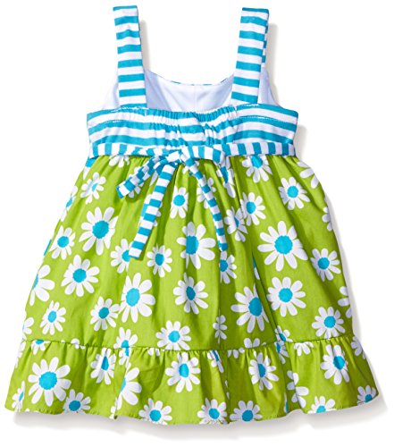 Blue and white striped knit to floral koshibo sundress with blue ric rac trim at waist