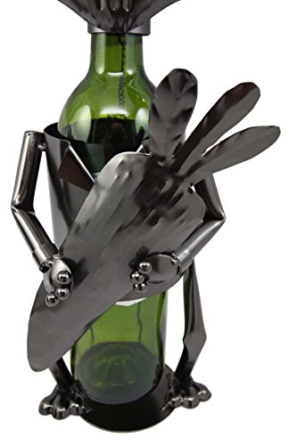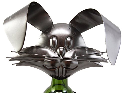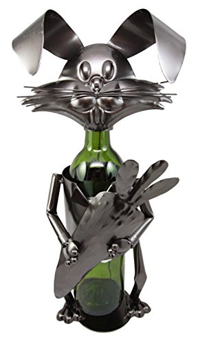 Atlantic Collectibles Whimsical Cottage Bunny Rabbit Holding Carrot Hand Made Metal Wine Bottle Holder Caddy