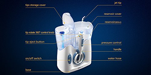 H2ofloss Water Dental Flosser Quiet Design(50db) With 12 Multifunctional Tips Countertop Dental Oral Irrigator for Family (hf-8whisper)