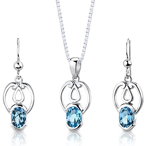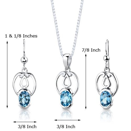 -. Title : Swiss Blue Topaz Pendant Earrings Necklace Sterling Silver Rhodium Nickel Finish Oval Shape 2.50 Carats