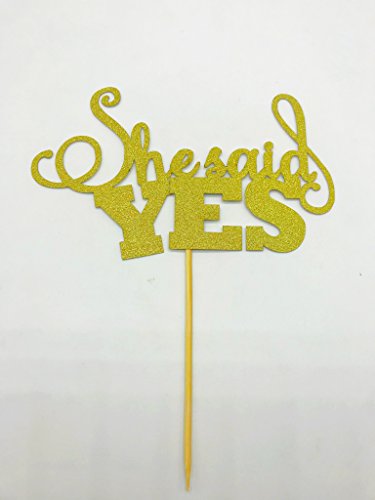 She Said Yes Bridal Shower Wedding Cake Topper Gold Decoration Gold 1Pack by ROUNDSQUARE