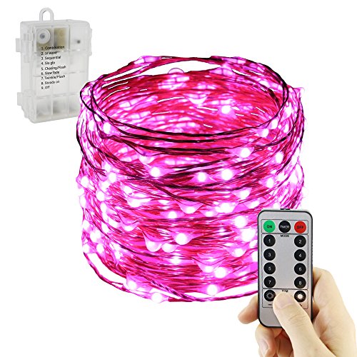 ER CHEN(TM) {New Version 240LED 40Feet} Indoor and Outdoor Waterproof 8 lighting model Battery Operated 240 LED String Lights on 40 Ft Long Copper Wire with 13 Key Remote Control(Pink)