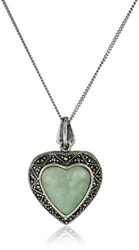 Sterling Silver Marcasite Green Jade Heart Pendant Necklace, 18"
