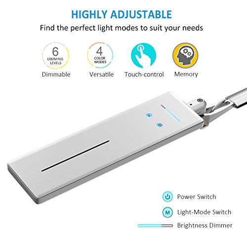 -. Title : BYB E430 Metal Architect Swing Arm LED Desk Lamp, Dimmable LED Table Lamp with Clamp, Pro Eye-protection Task Lamp, 4 Lighting Modes, 6 Dimming Levels, Touch-sensitive Memory Control Panel, Silver