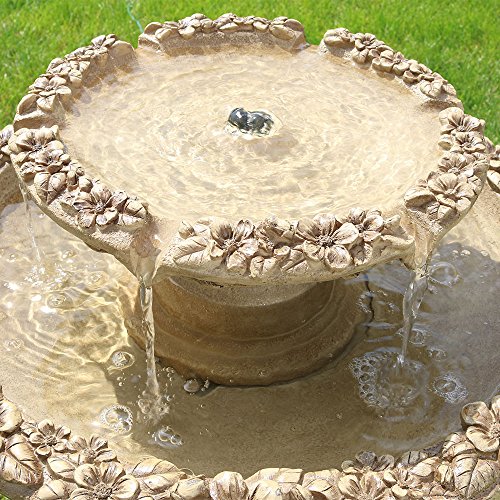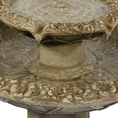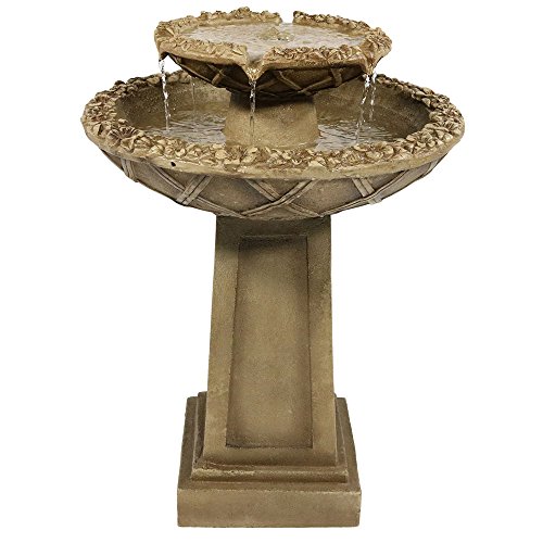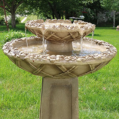 Sunnydaze Beveled Flower 2-Tier Birdbath Water Fountain, 28 Inch Tall