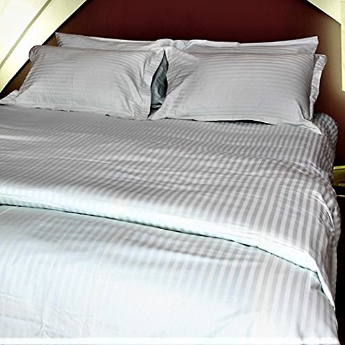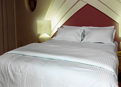 Just Linen 400 Thread Count 100% Cotton Sateen, Stripe White, Queen Bedding Sheet Set with Deep Pocketed Fitted Sheets
