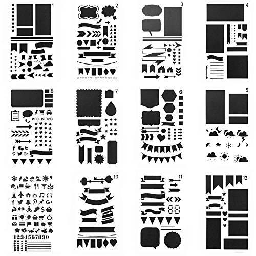 Quantity: the package includes 12 pieces of Journal Ruler Stencil in 12 designs, 1 pieces in each design, enough for you to use for different purposes