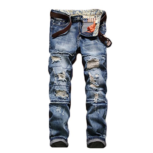 Design & Feature: Regular Waist, Slim Legs with Holes at Knees and Legs; Designed with Destroyed Details