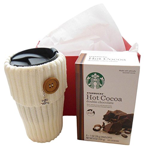 Graduation gift giving made easy with this cute Starbucks Cocoa and cuddly white sweater and travel mug set.
