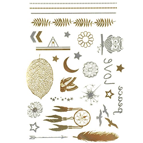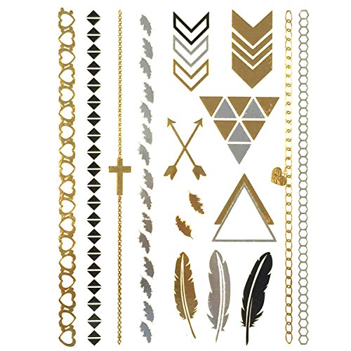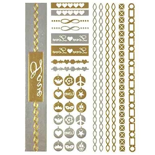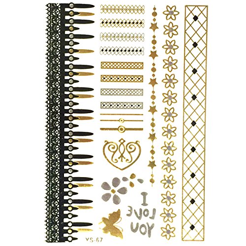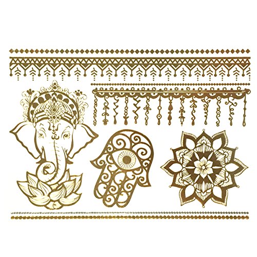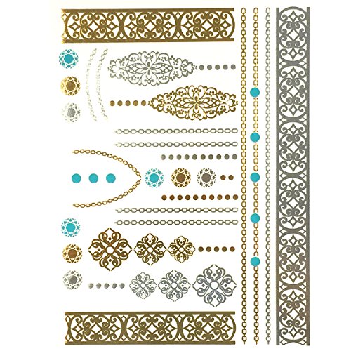 Get noticed with these beautiful and exotic temporary tattoos. Exquisite body art that is celebrity inspired, the tattoos can be used in place of jewelry. Available in metallic gold, silver, and black colors in a number of designs and patterns. Great for wearing at the beach / poolside, while clubbing, or to special events.