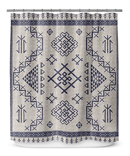 KAVKA Designs Aztec Light Blue Shower Curtain, (Beige/Blue) - NAVAJO Collection, Size: 70x90 - (MGTAVC2028LPLSC)