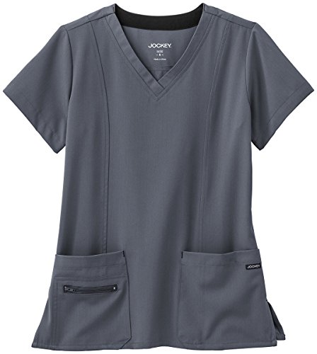 Modern Fit Collection By Jockey Women's Zipper Pocket V-Neck Solid Scrub Top