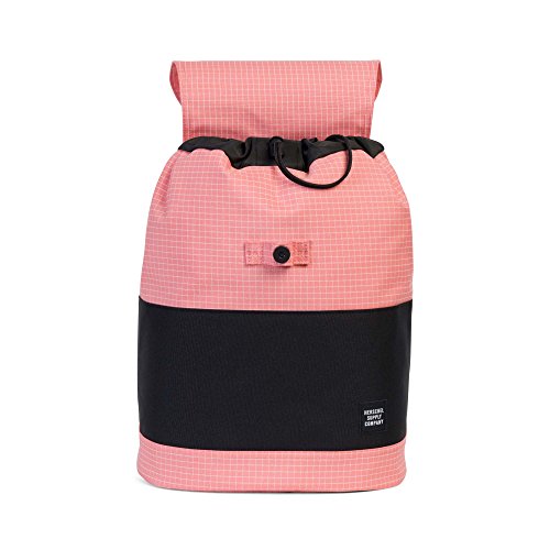 The design driven Reid backpack is equipped with a traditional drawcord cinch closure hidden beneath a rounded top flap.