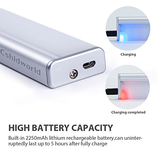 RECHARGEABLE BATTERY: Powered by built-in 5V 2250mAh lithium battery, our Rechargeable LED Closet Light is easy to charge by equipped USB cable and provides about 5 hours of continuous light after fully charged.Long operating life is over 30,000 hours.