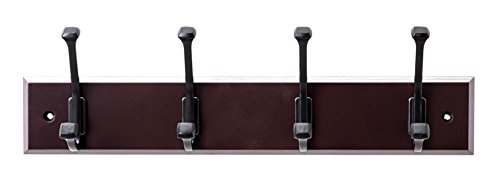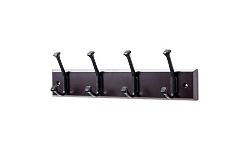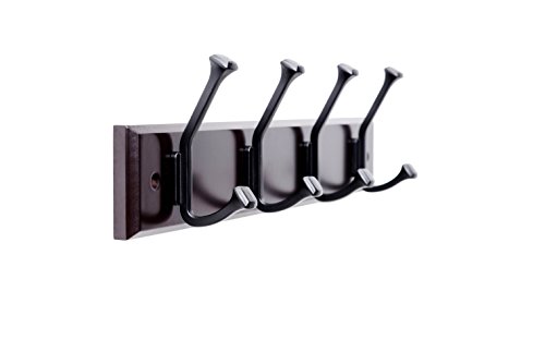 Finnhomy Wooden Coat Hooks Wall Hooks 4 Dual Hooks 16-Inch Rail/Pilltop Rack Long Coat Rack for Clothes Entryway Foyer Storage Organization Bathroom Towel Key Accessory Espresso/Black Hook