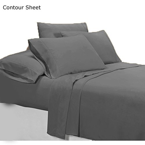 Solid Pattern 500 Thread Count Egyptian Cotton 4 Piece Sheet Set with 15 Inch Deep Pocket Fitted Sheet Queen Size Dark Grey
