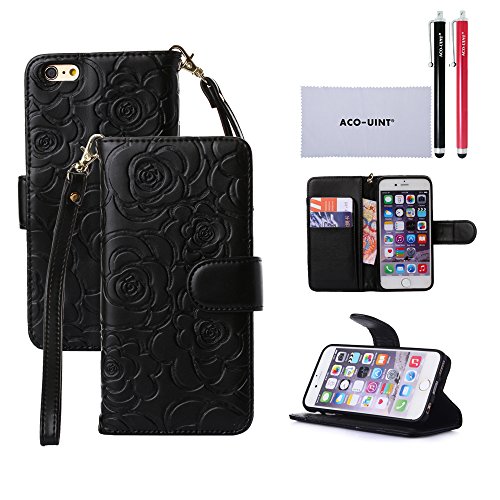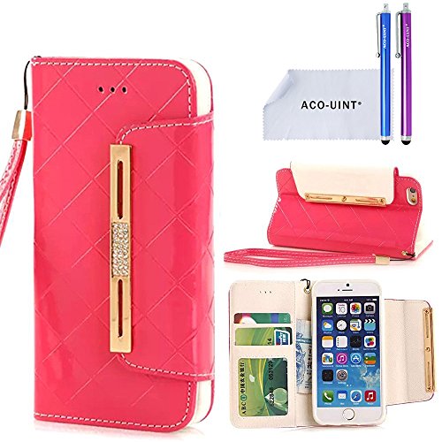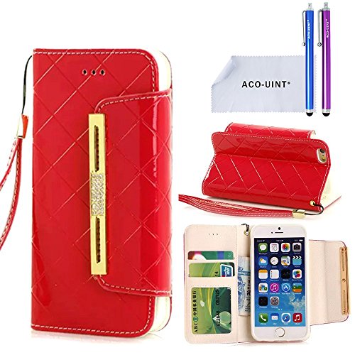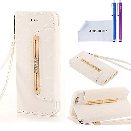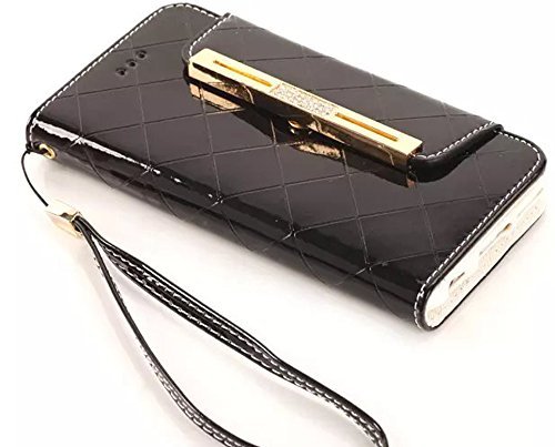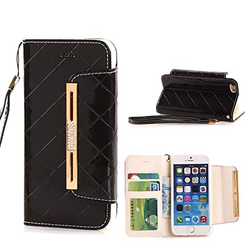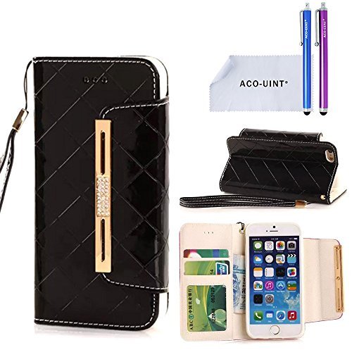 ACO-UINT iPhone SE 5s Wallet Case,iPhone SE 5s 5 Case,Deluxe Grid Wallet Leather Case,Folio Flip Bling Diamond Cover Strap Case for iPhone 5s 5 SE Black