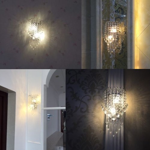Base:Silver,chrome finish High quality crystal,beautiful decoration Use 2 candelabra (E12) Base bulbs,bulbs not included Easy to install 7" wide and 12.5" tall