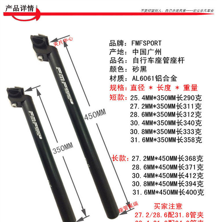 1、座管标准长度是350mm 我们的座管长度最 短也是350mm长,不是300长的 不要拿300长的座管价格和我们比较的。