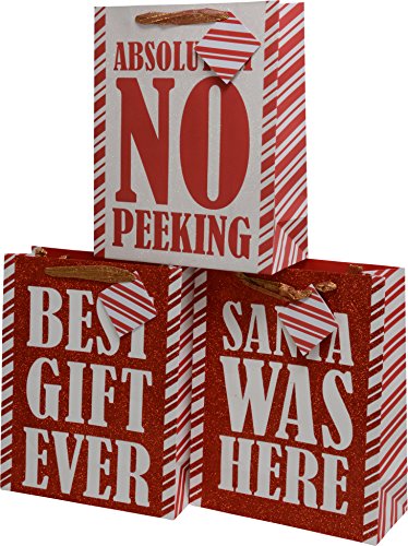 (Baron Carter Paper Co.)/Stationery Party Supplies/Gift Wrapping Supplies/DIRECT FROM USA/Baron Carter, christmas Large Gift Bags, Red/White Holiday Glitter Message Series, heavy-duty, ...