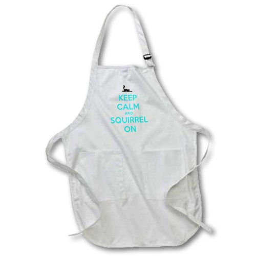 3dRose apr_171881_2 Keep Calm and Squirrel On, White and Turquoise Medium Length Apron with Pouch Pockets, 22 by 24-Inch