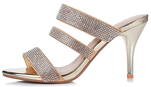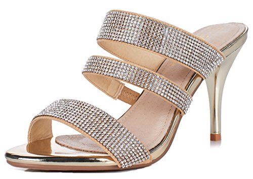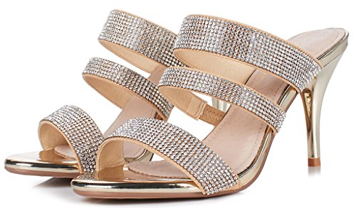 (LizForm)/Women's/Pumps/DIRECT FROM USA/LizForm Women Open Toe Stiletto Sandals Sparkle Rhinestone Studded Evening Heels