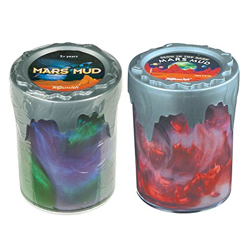 This colorful, gooey slime looks like something from outer space! Mars Mudd will not stain furniture or carpets and is suitable for indoor or outdoor play. Squish it, stretch it, mold it, and shape it. Challenge your children's imaginations and keep them active with Toysmith. Committed to providing the most imaginative toys along with the highest safety standards, Toysmith has toys appropriate for all age groups. Bundle includes Original Mars Mud and Glow-in-the-Dark Mars Mud. Assorted colors. Recommended for ages 5 and up.Feature