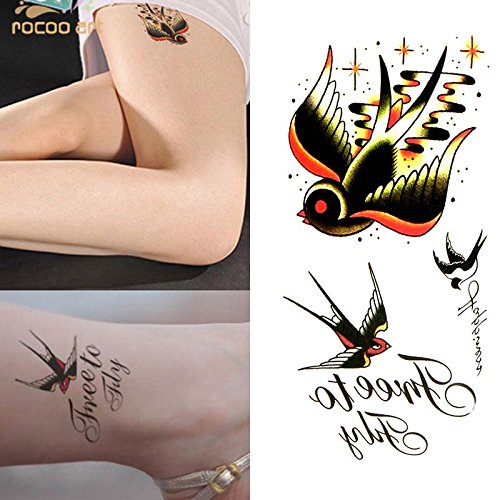 Oottati Small Cute Temporary Tattoo Swallow Words Quote Arm (Set of 2)