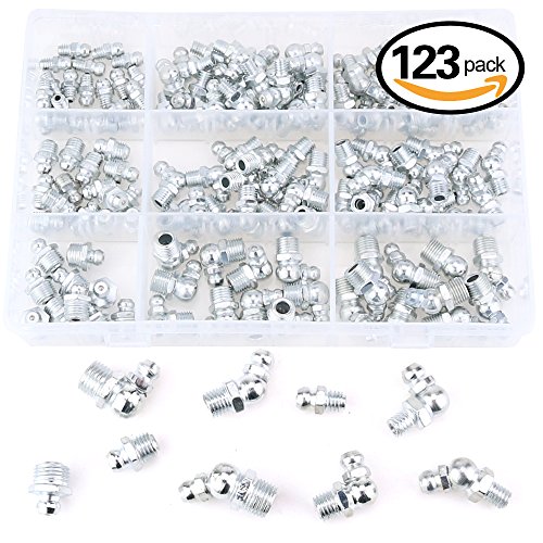 Hilitchi 123Pcs Metric Hydraulic Zerk Grease Fittings Assortment Kit (Metric)
