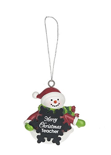 Merry Christmas Teacher Jolly Snowman with Snowflake Sentiment Resin Ornament
