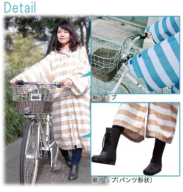 ファスナーの合わせ方により裾の形状が早変わり!!自転車にも乗りやすい2Wayレインコートです。収納に便利なポーチ付き。