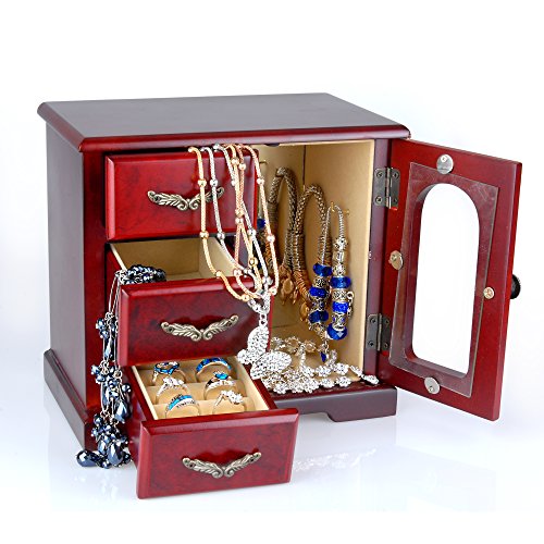 Studio : Geff House Publisher : Geff House Binding : Jewelry Product Description Geff House Gift Box is finished with a beautiful cherry wood colors and antique accents. Features a draw with ring slots and two miscellaneous draws. The door compartment features two hooks for hanging necklaces and bracelets. 0