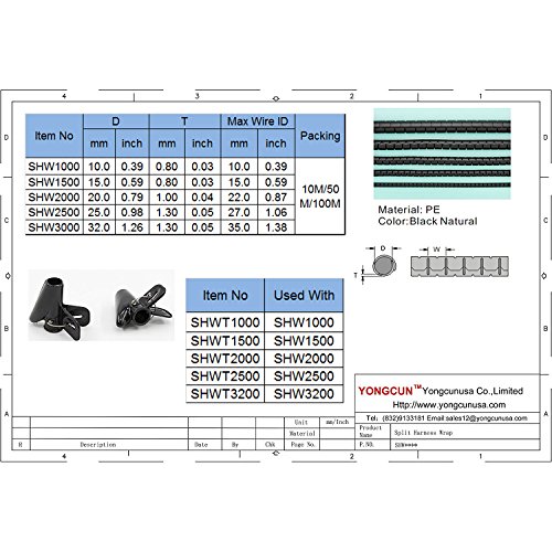 Yongcun Split Wrapping Band Slit Harness Wrap with Installation Tool Cable Management Cable Organize Manage Cable Protection Size OD 32mm&1 1/4'' 15FT Black