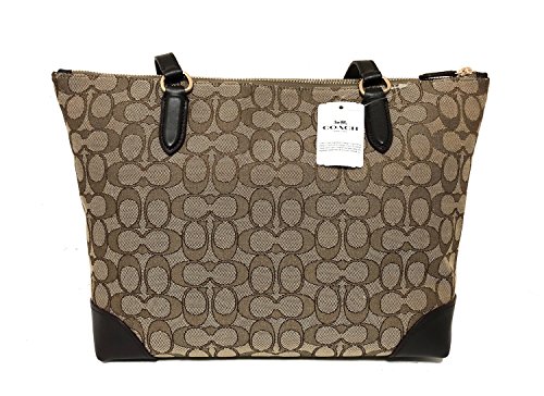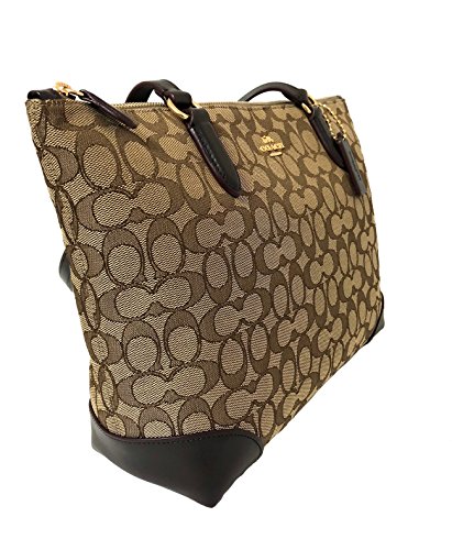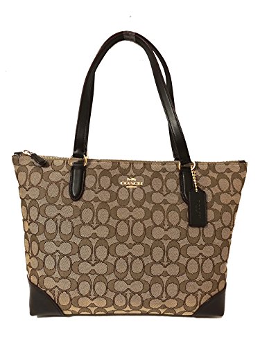 Coach Signature Zip Tote Shoulder Handbag (IM/Khaki/Brown)